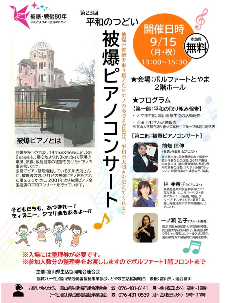 2001年より全国巡演平和コンサートを行っています。その被爆ピアノを前畑匡伸さんと林亜希子さん(フルート一ノ瀬浩子さん)による
